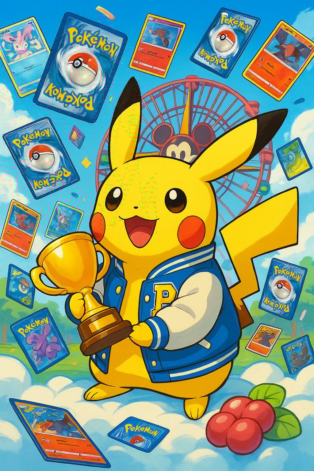 Anaheim's official Pikachu card features the electric mascot in a varsity jacket with iconic SoCal flair. Competitors and attendees will receive it this August.